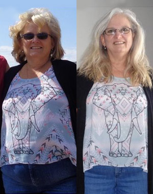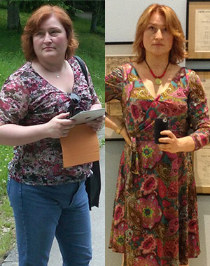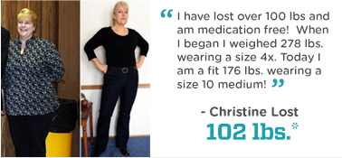 “I’ve lost over 100lbs and am medication free! When I began I weighed 278lbs wearing a size 4x. Today I am a fit 176 lbs, wearing a size 10 medium!”