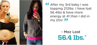 “After my third baby I was topping 212lbs. I have lost 56lbs and have more energy at 41 than I did in my 20s!”