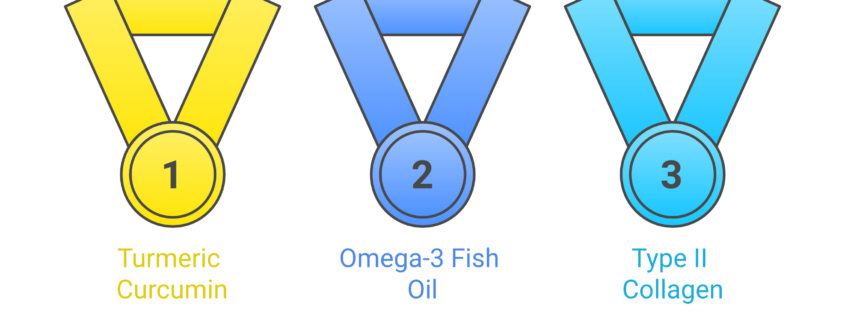 When you combine all three, you’re addressing cartilage repair (collagen), inflammatory signaling (turmeric), and joint lubrication (omega-3). Each works through a different mechanism, so the effects add up rather than overlap.
